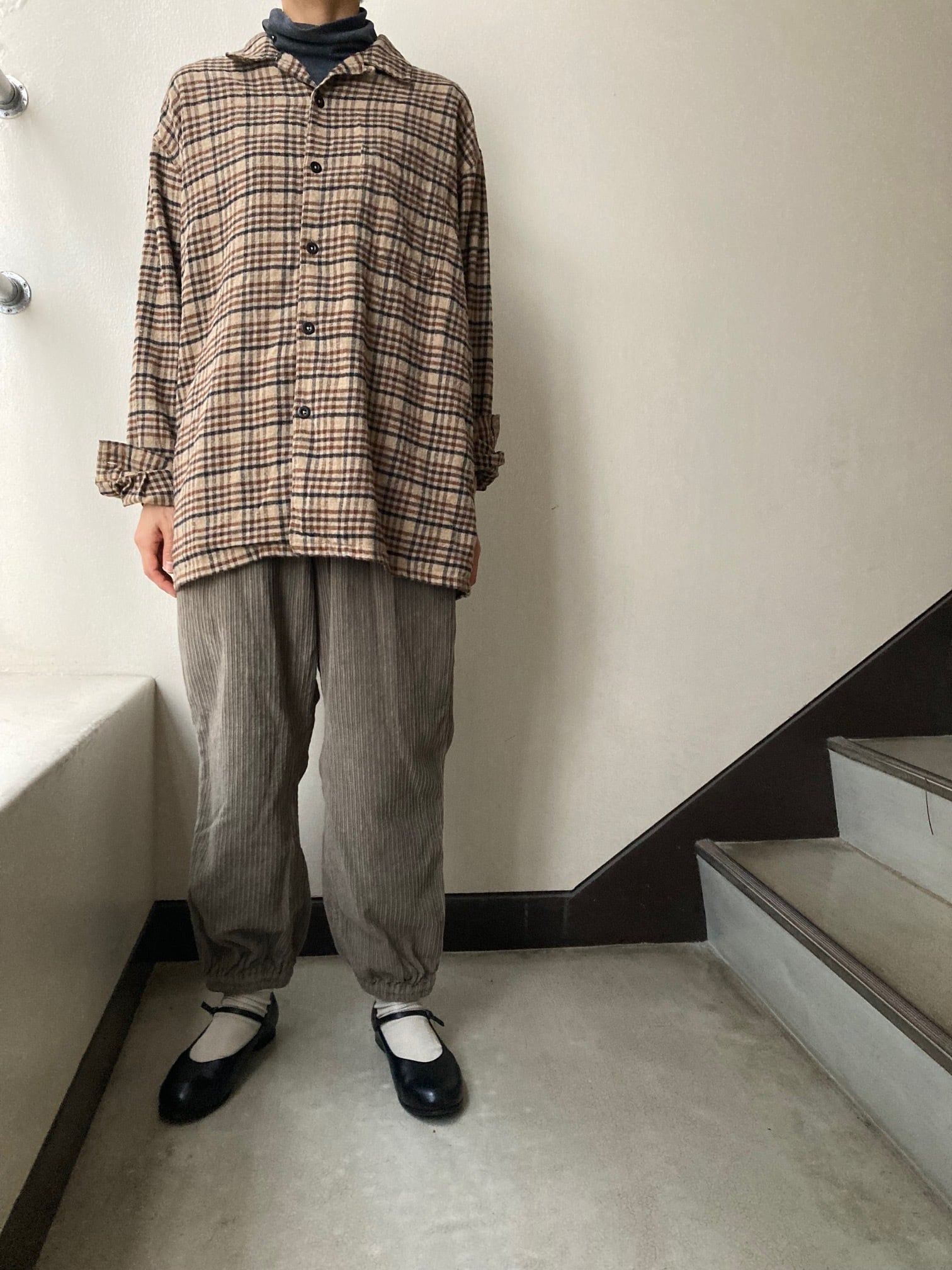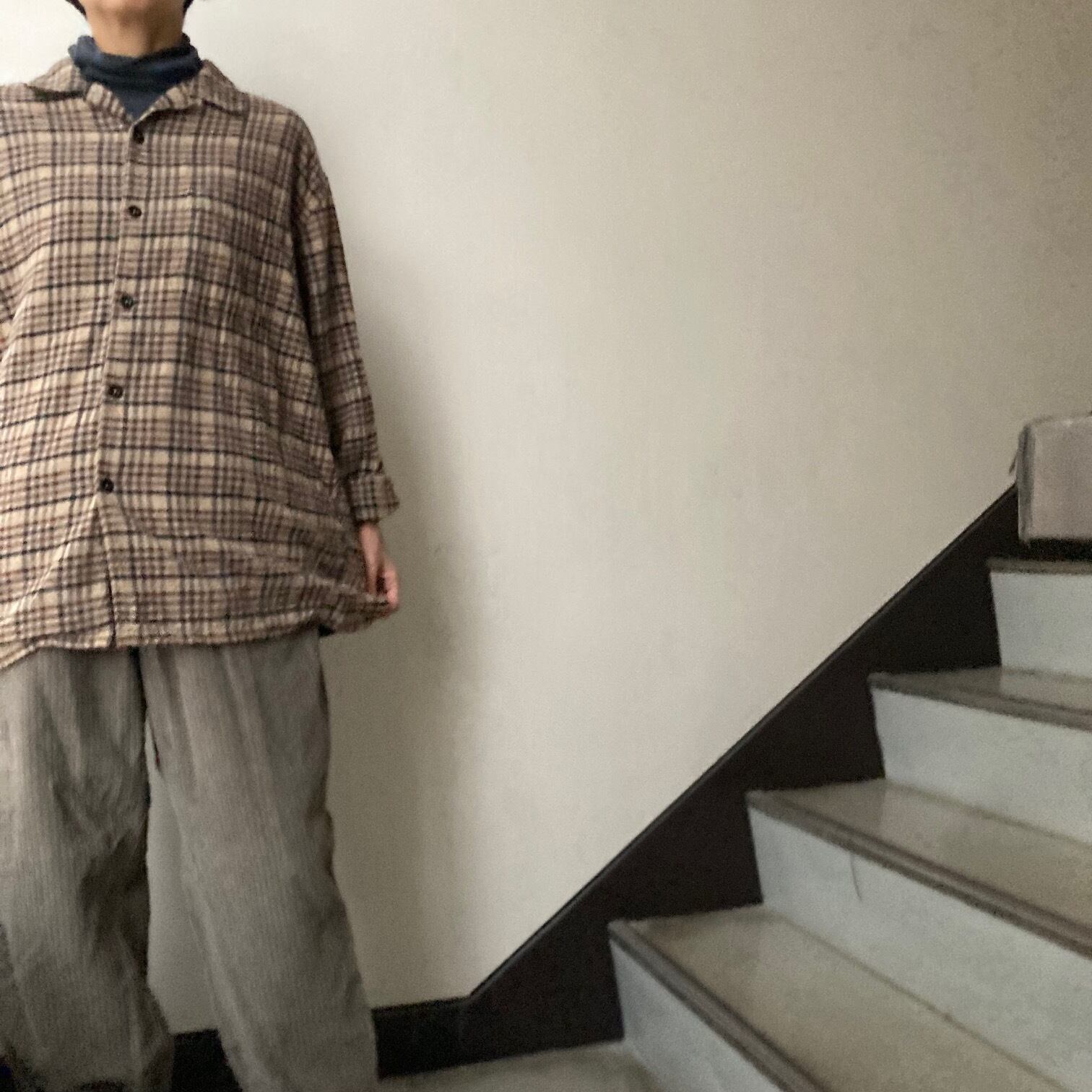 コットンポリエステルなど色々な糸を使用し、メランジ調に仕上げた素材はビンテージライクな加工感をお楽しみいただけます。ブラウン・ブラックを基調としたクラシックなチェック柄はメリハリのあるコーディネートに仕上げてくれるアイテムです。製品染めを施しているので、柔らかな着心地と独特の風合いを楽しんでいただけます。オープンカラーの襟は、程よく抜け感を出してラフな印象の着こなしに。大きめのボタンや左胸のパッチポケット、ユーズドのような生地の風合いがワークウェア感のある雰囲気に仕上がっています。1枚でコーデを引き締めるチェック柄のアイテムで、程よくゆとりがあるので、シャツとしてはもちろん、季節の変わり目には羽織りとしても重宝します。