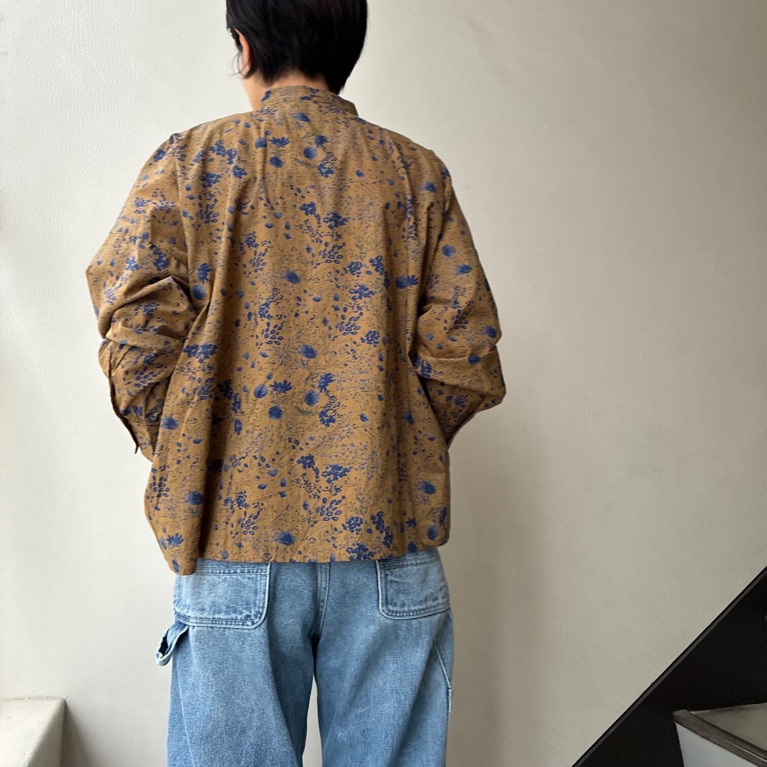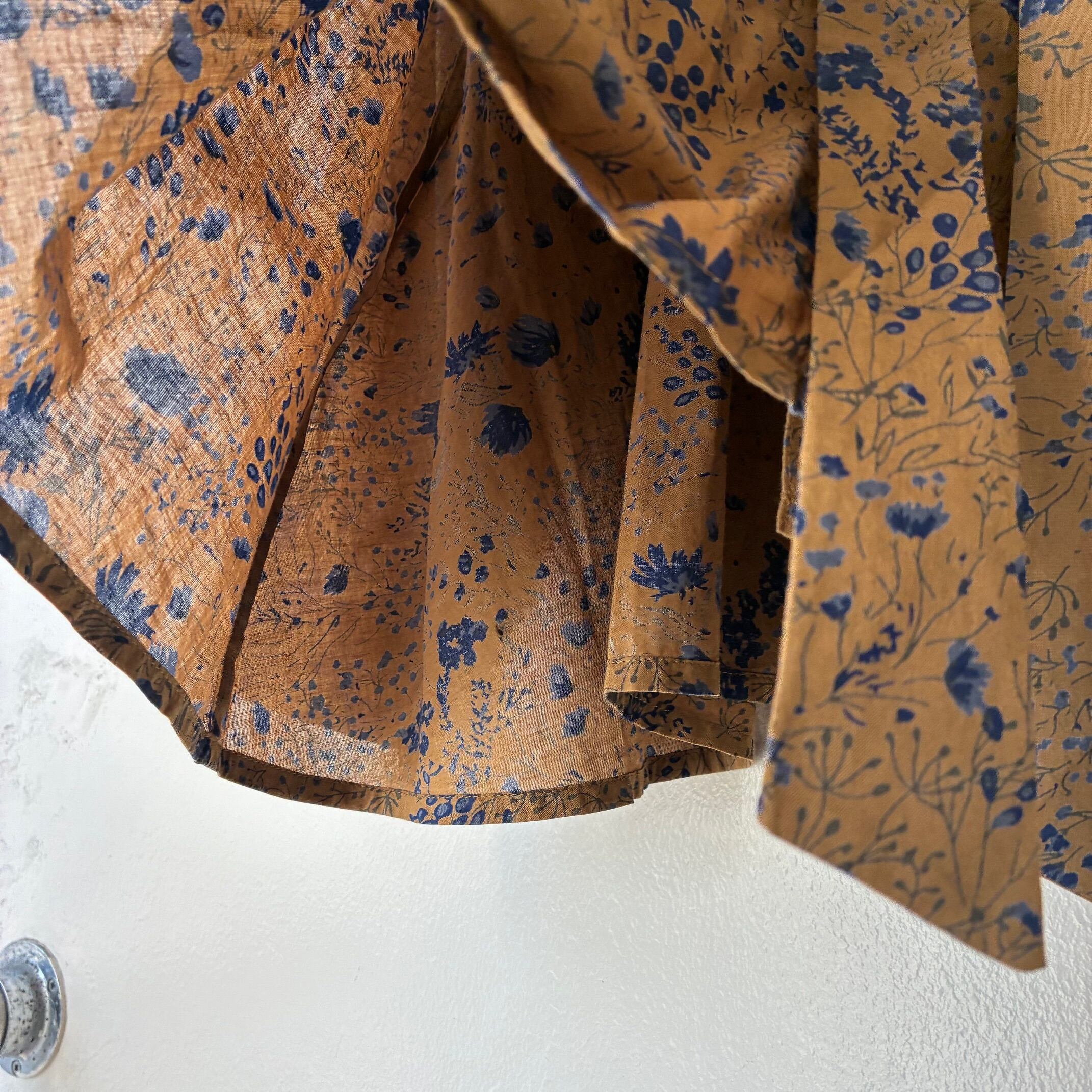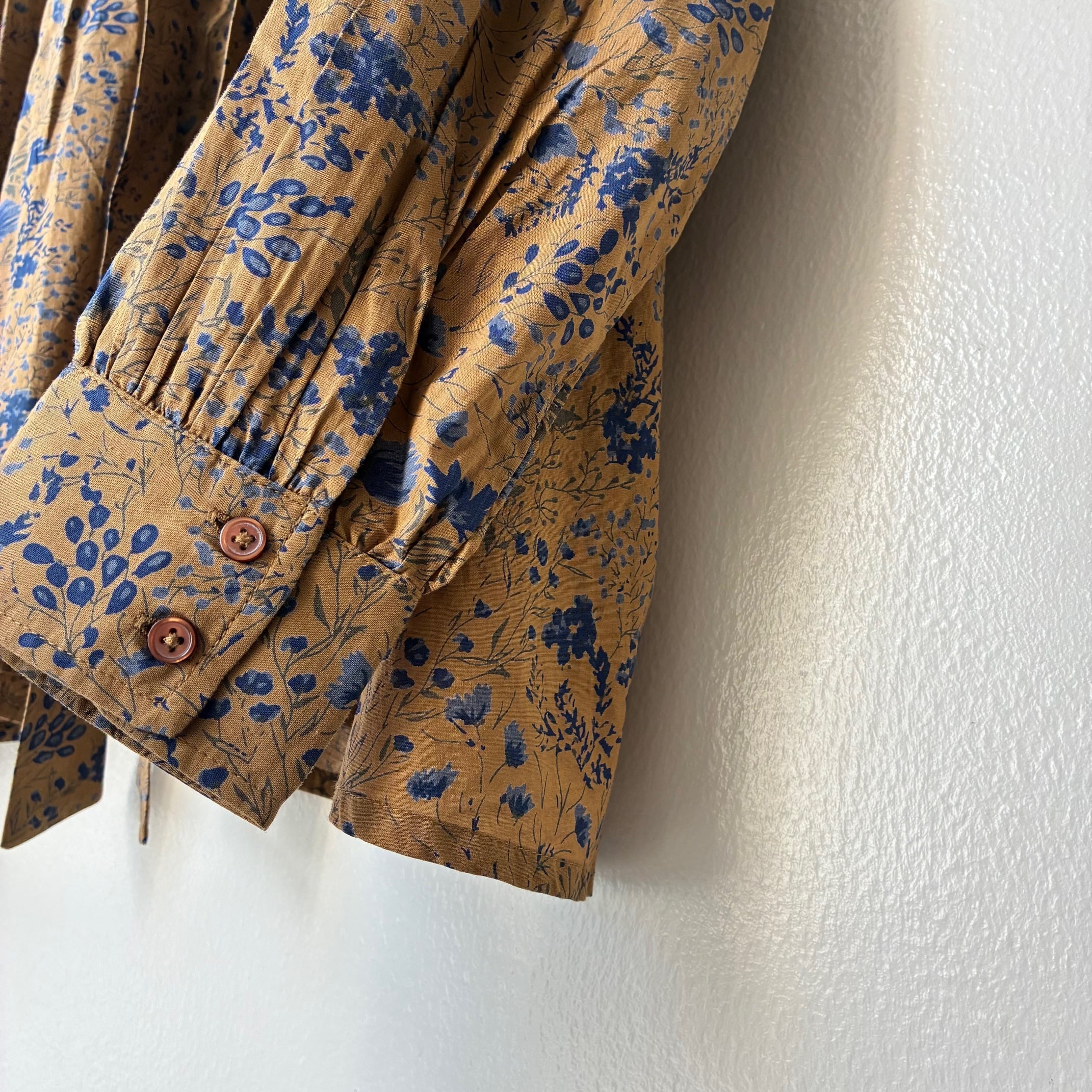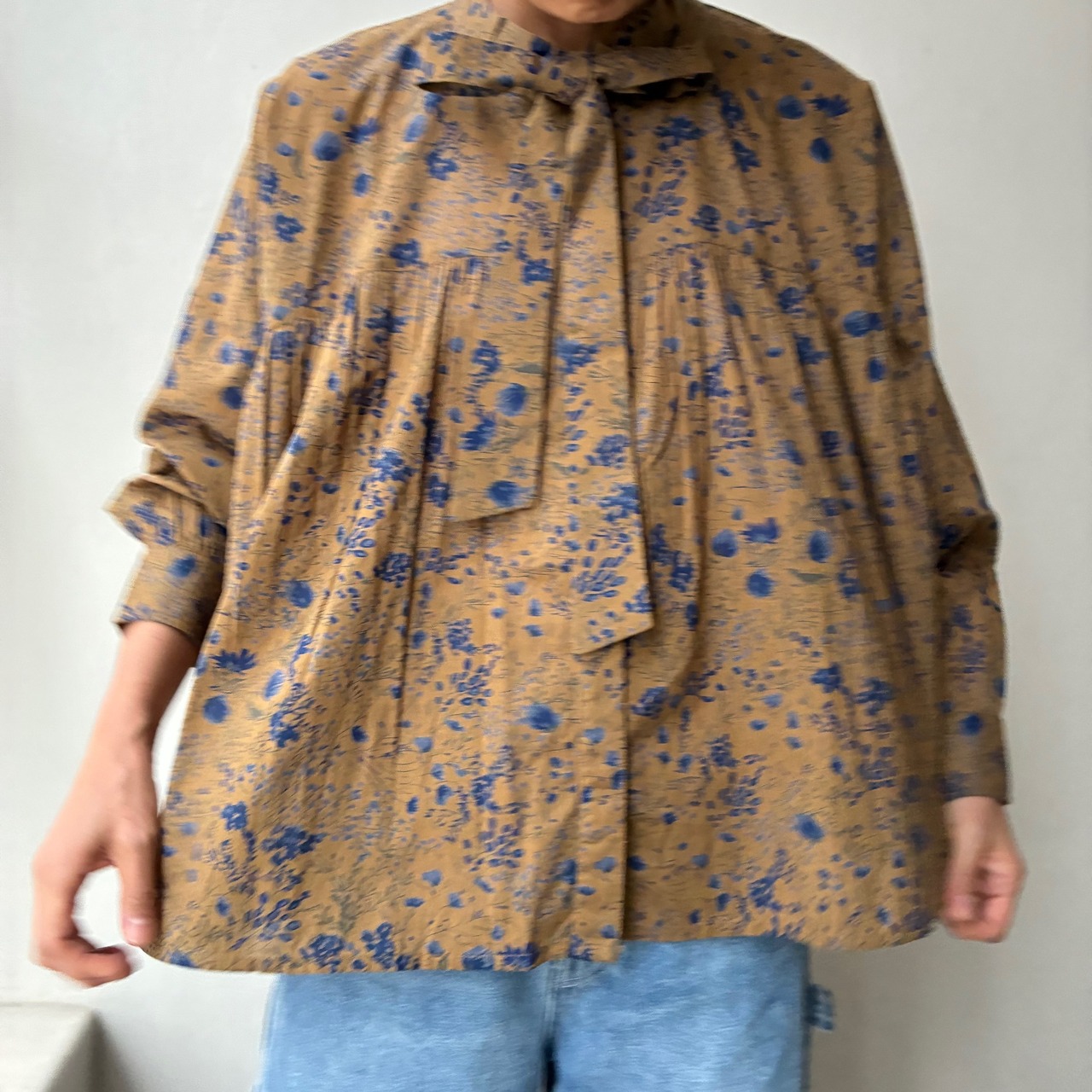 60番手コットンキャンブリック フラワープリントタイ付きフロントギャザーシャツ